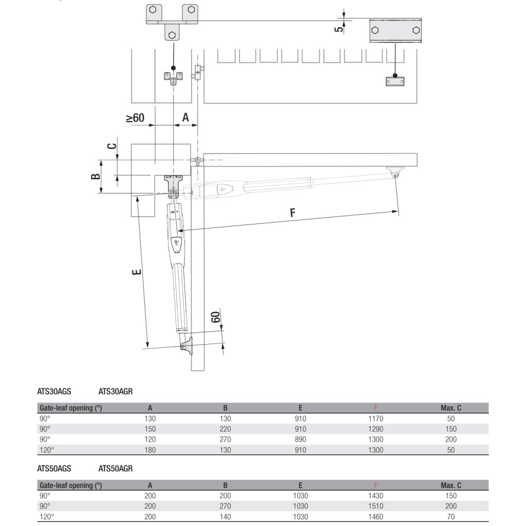 Možnosť kotviť pohon na široký stĺpik, vzdialenosť osi pántu krídla brány po hranu stlpika môže byť až 200mm.Dodatočné parametre