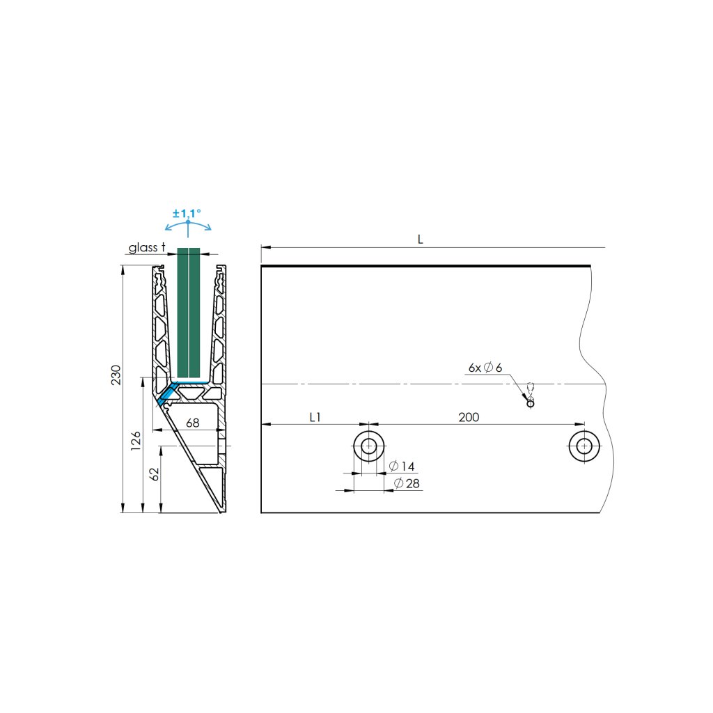 AL kotviaci profil pre sklo, bočné kotvenie, bez príslušenstva.Dodatočné parametre