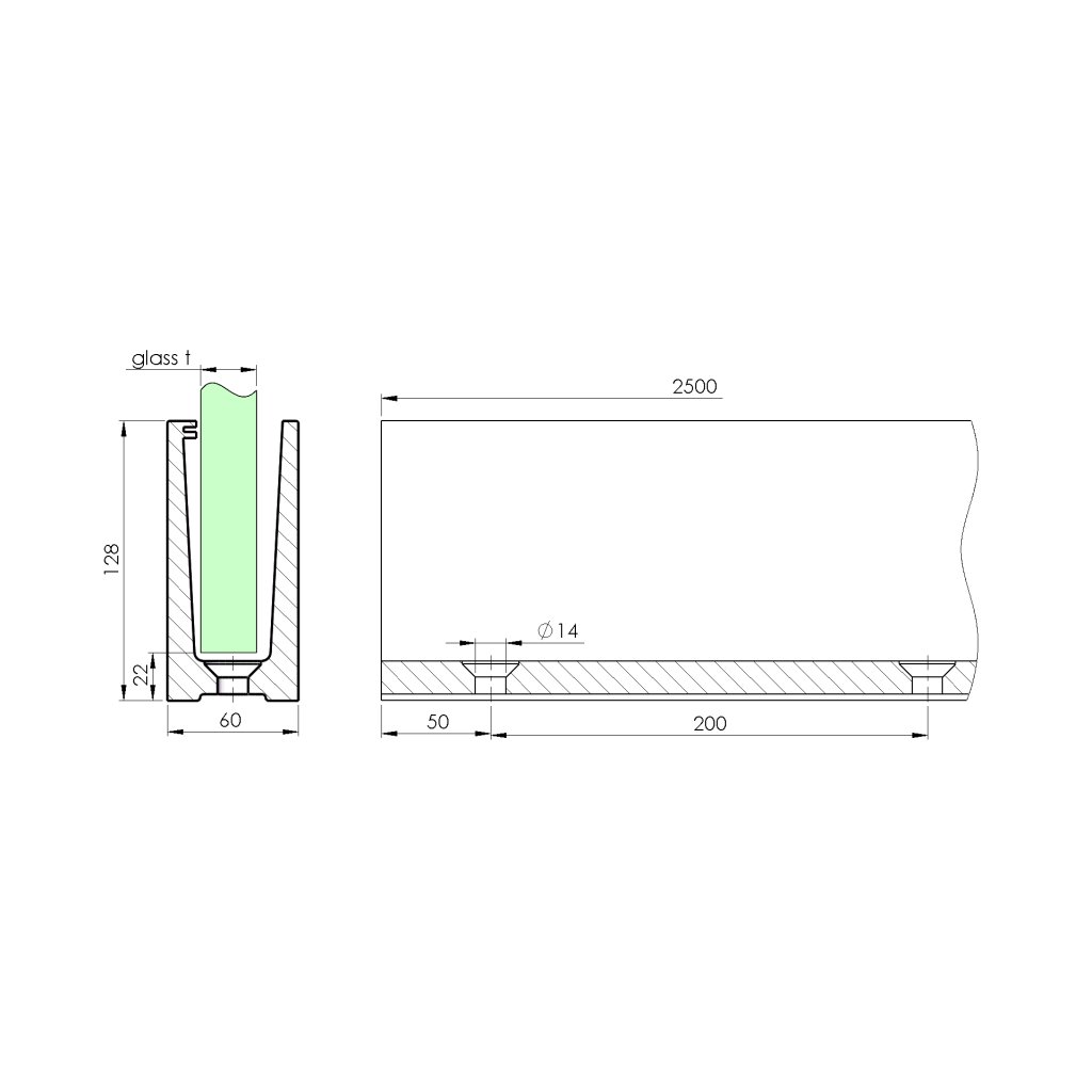 AL kotviaci profil pre sklo, vrchné kotvenie, povrch brúsený a eloxovaný, bez príslušenstva.Dodatočné parametre