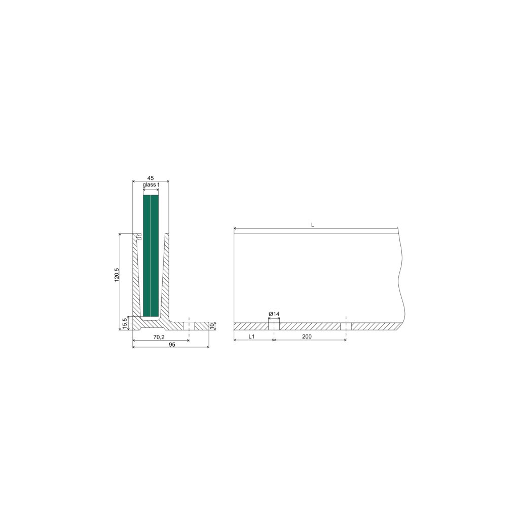 AL kotviaci profil pre sklo, vrchné kotvenie, povrch brúsený a eloxovaný, bez príslušenstva.Dodatočné parametre