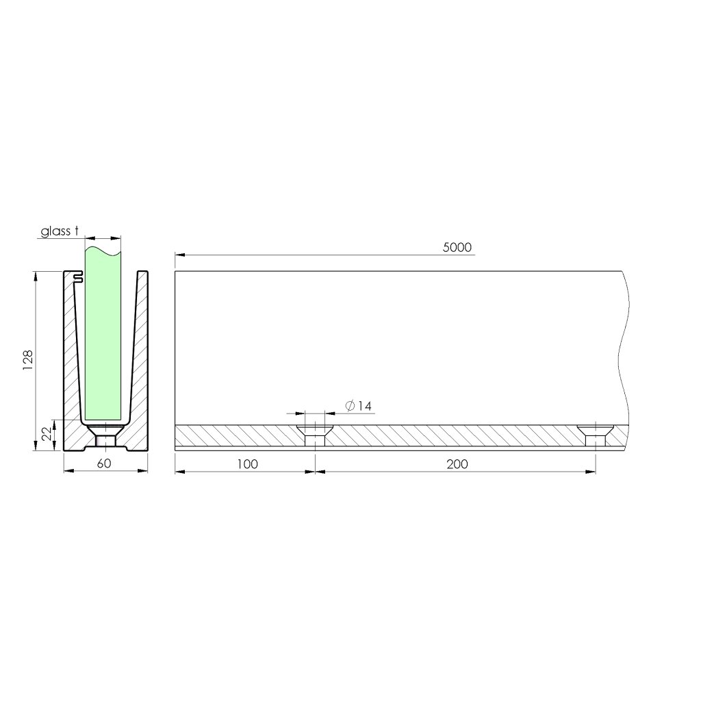AL kotviaci profil pre sklo, vrchné kotvenie, povrch brúsený a eloxovaný, bez príslušenstva.Dodatočné parametre