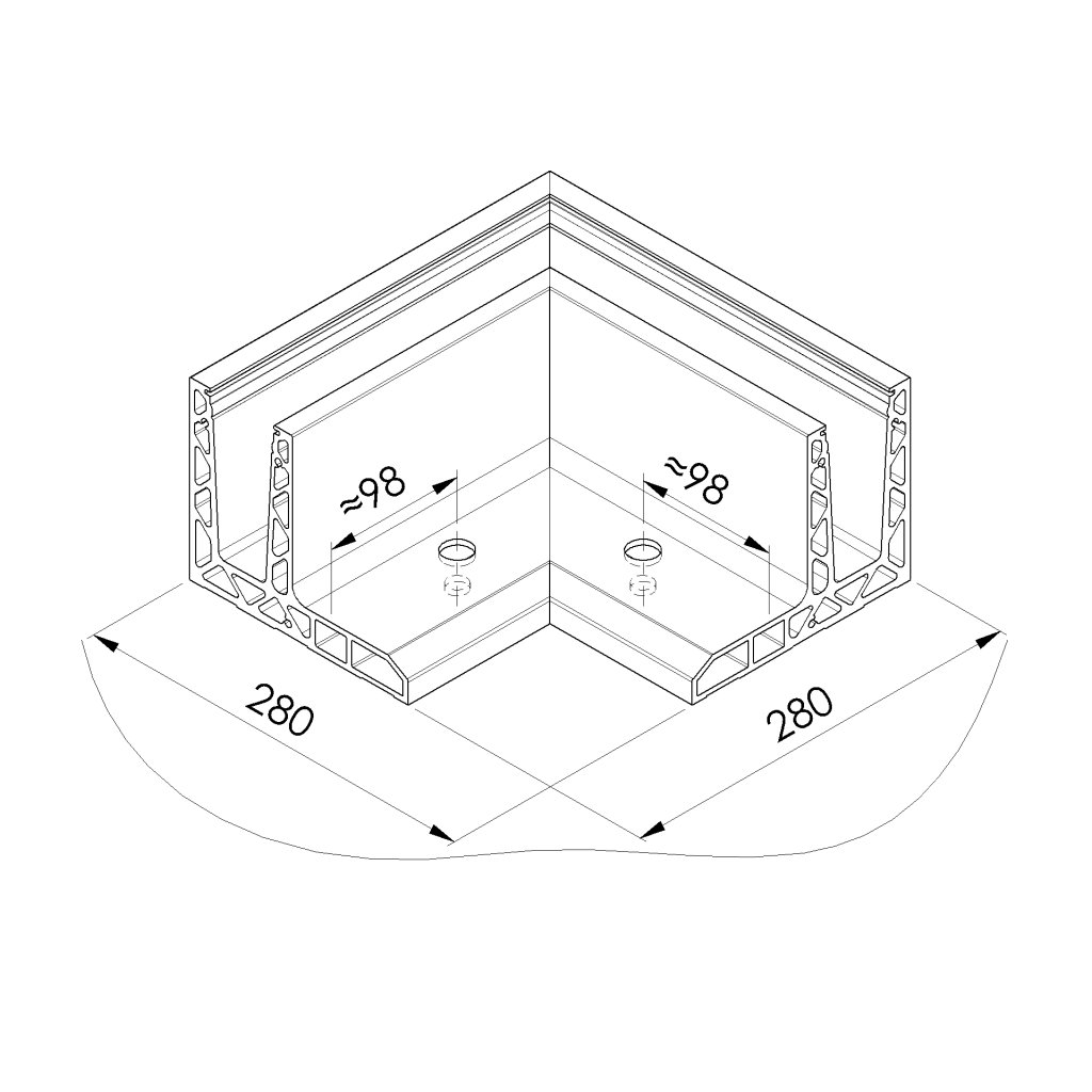 Vonkajší 90° roh pre Al. kotviaci profil AL/0018-...-S-E , kotvenie z vrchu do podlahy.Dodatočné parametre