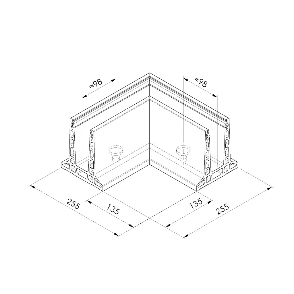 Vnútorný 90° roh pre profil AL/0019-...-S-E kotvenie z vrchu do podlahy.Dodatočné parametre