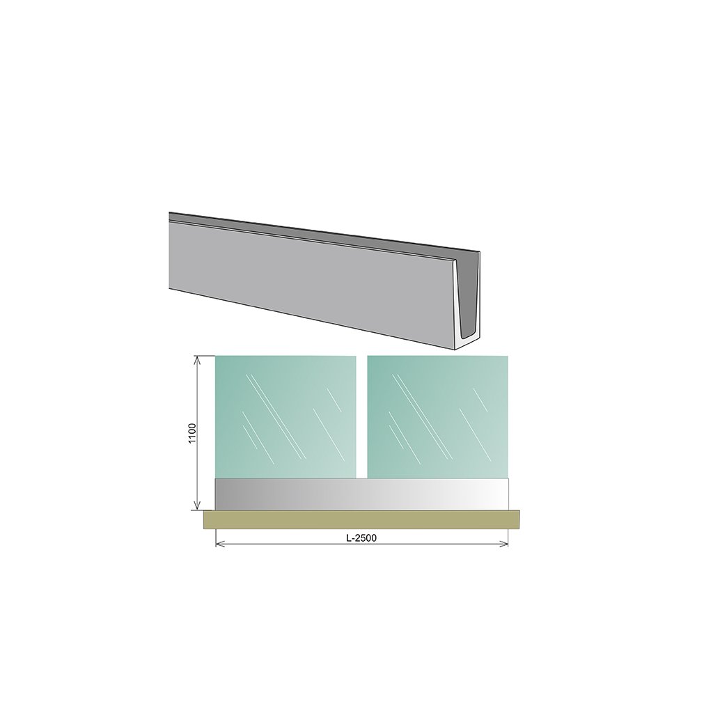 Celosklenené zábradlie v AL profile, 2500x1000mm