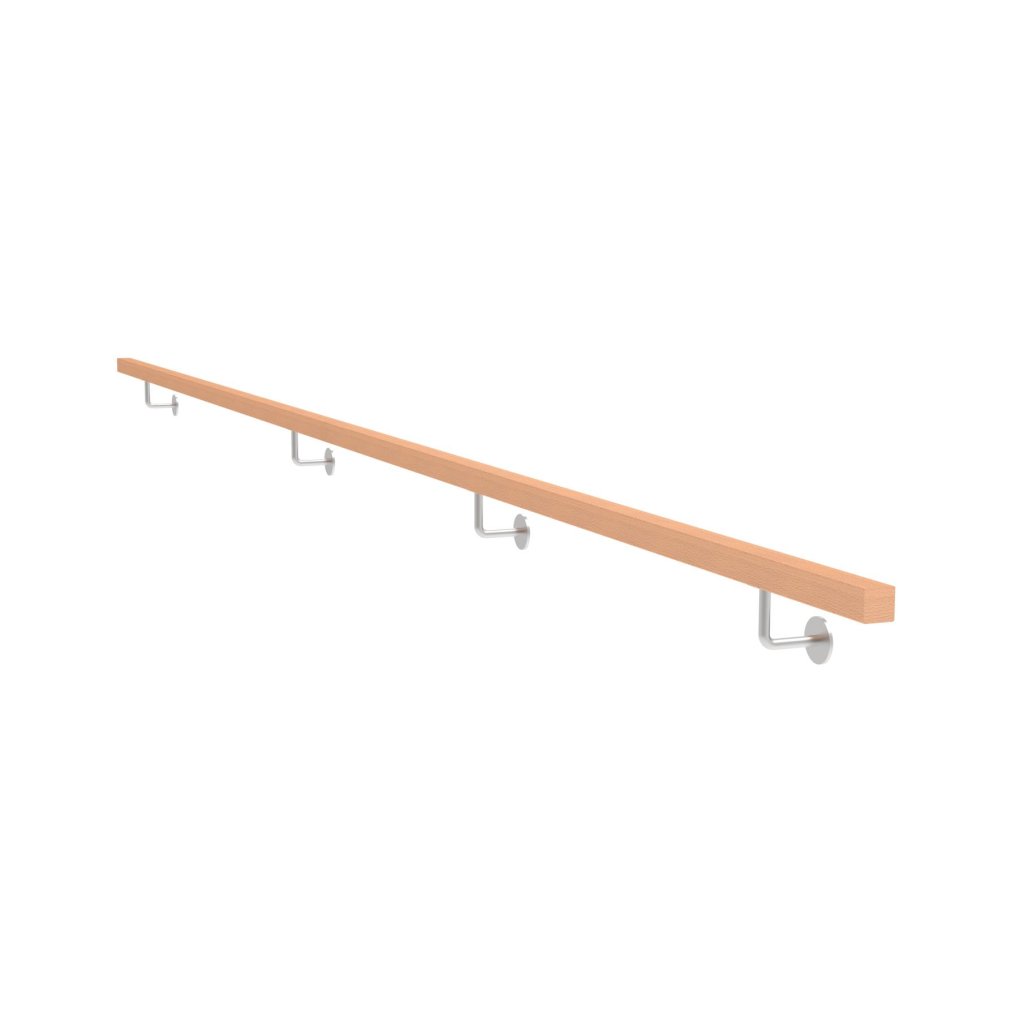 Drevené madlo BUK a nerezové držiaky, JP40x40mm/L4000mm