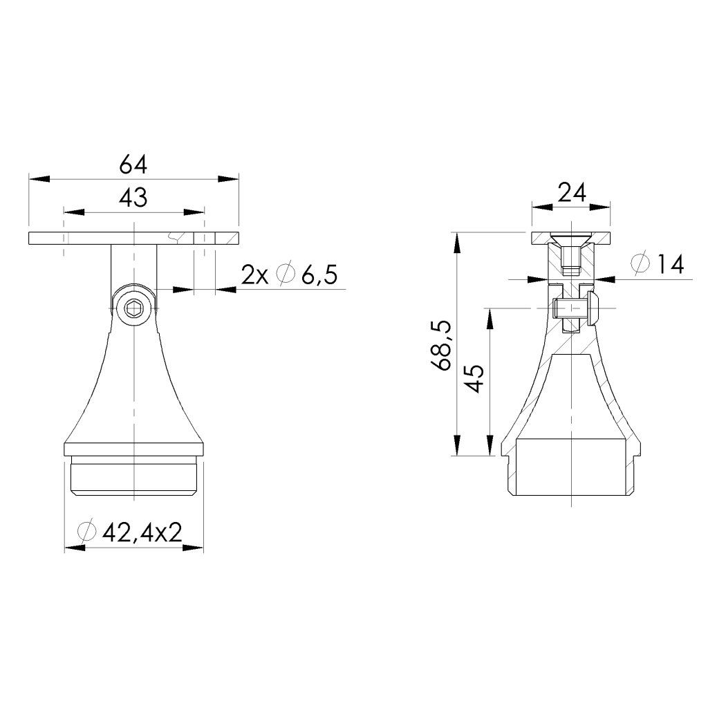 Držiak madla AISI304, 40x40x2/d42,4x2/H67mm