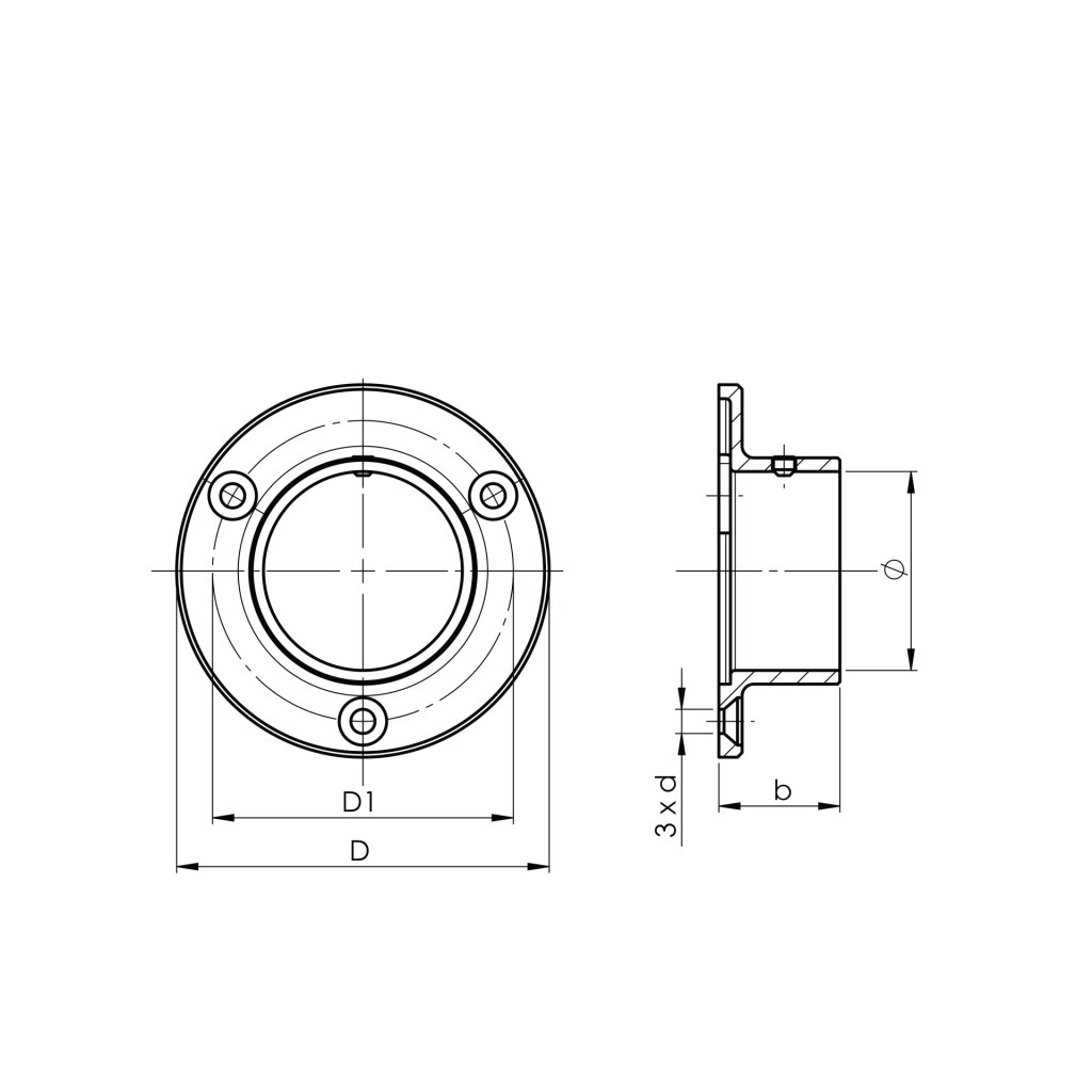 Držiak madla na stenu. Kotvenie drziaka na stenu pomocou troch otvorov na prirube - montazny spoj.Dodatočné parametre