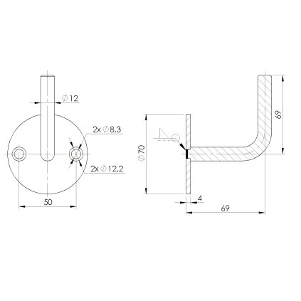 Materiál: Nerez AISI 304, Povrchová úprava: Brus, Madlo: Na navarenie, Kotvenie: Na stenu