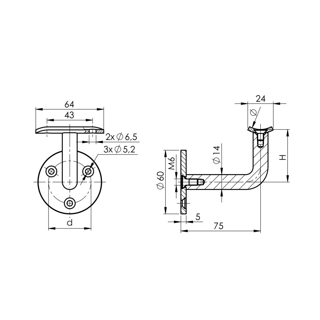 Držiak madla na stenu. Kotvenie drziaka na stenu pomocou troch otvorov na prirube - montazny spoj.Dodatočné parametre