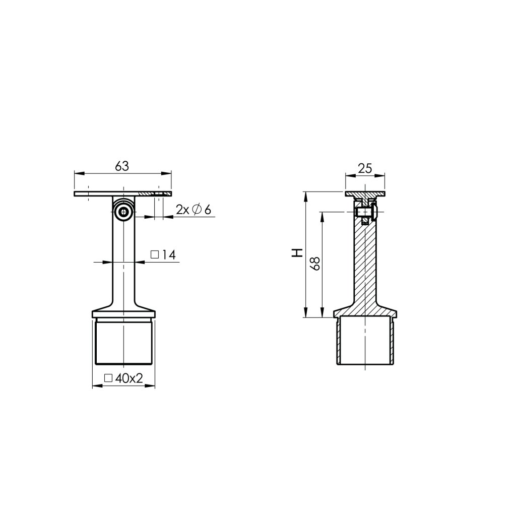 Držiak madla s moznost nastavenia sklonu madla. Lepeny spoj drziak - stlpik, montazny spoj drziak - madlo.Dodatočné parametre