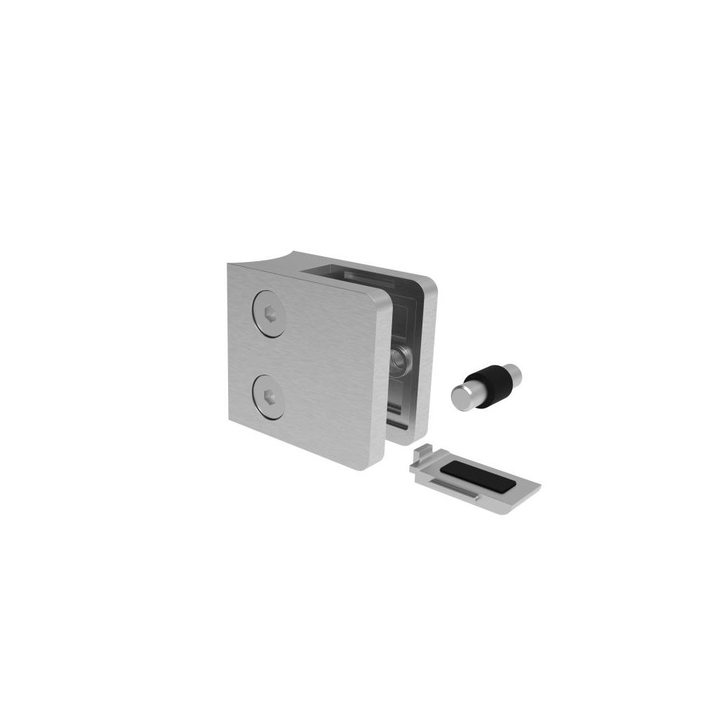 Drziak vyplne skla (plechu, tabuľovej vyplne). Držanie skla (poistenie voči vypadnutiu): zverny spoj (doporucene pouzitie pri vrchnom kotveni) alebo zverny spoj + kolik (doporucene pouzitie pre bocne kotvenie) alebo zverny spoj + bezpečnostná platnicka so zamkom pri montazi - ochrana proti vypadnutiu platnicky (doporucene pouzitie pre bocne kotvenie). Držiak neobsahuje tesnenie (nutnost dokupit 2ks tesneni podla hrubky skla) a krytky pre skrutky.Dodatočné parametre