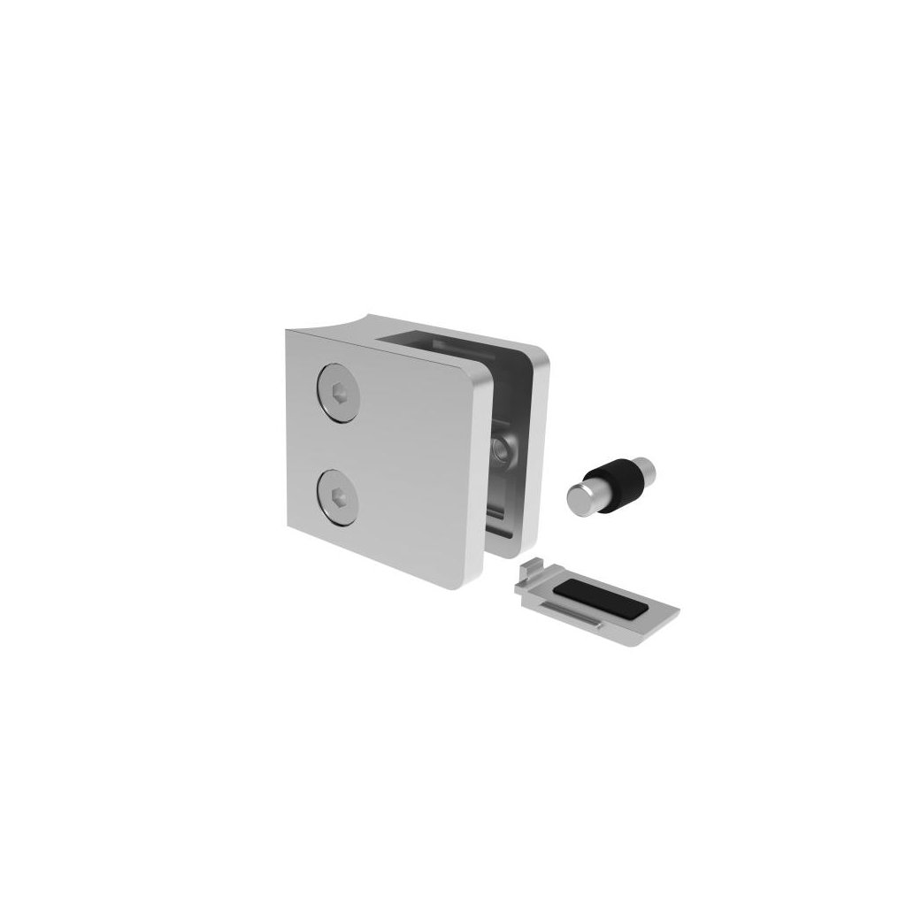 Držiak sklenenej (plechovej, tabuľovej) výplne je konštrukčný prvok používaný na upevnenie a stabilizáciu sklenenej alebo plechovej výplne v rôznych konštrukciách, ako sú zábradlia, balkóny alebo schodiská. Tento držiak zaisťuje pevné a bezpečné prichytenie výplne, čím zvyšuje celkovú stabilitu a bezpečnosť konštrukcie. Sú súčasťou moderných architektonických riešení, ktoré kombinujú funkčnosť, bezpečnosť a estetický vzhľad. Pri výbere držiaka je dôležité zvážiť jeho materiál, dizajn, funkčnosť a kompatibilitu s konkrétnou výplňou a celkovou konštrukciou. Držanie vyplne - poistenie voči vypadnutiu je dosiahnuté pomocou zverného spoja (doporučené použitie pri vrchnom kotveni) alebo zverny spoj + kolik (doporučené použitie pre bočne kotvenie) alebo zverny spoj + bezpečnostná platnicka (doporucene pouzitie pre bocne kotvenie). Držiak neobsahuje tesnenie (nutnost dokupit 2ks tesneni podla hrubky skla) a krytky pre skrutky.Dodatočné parametre