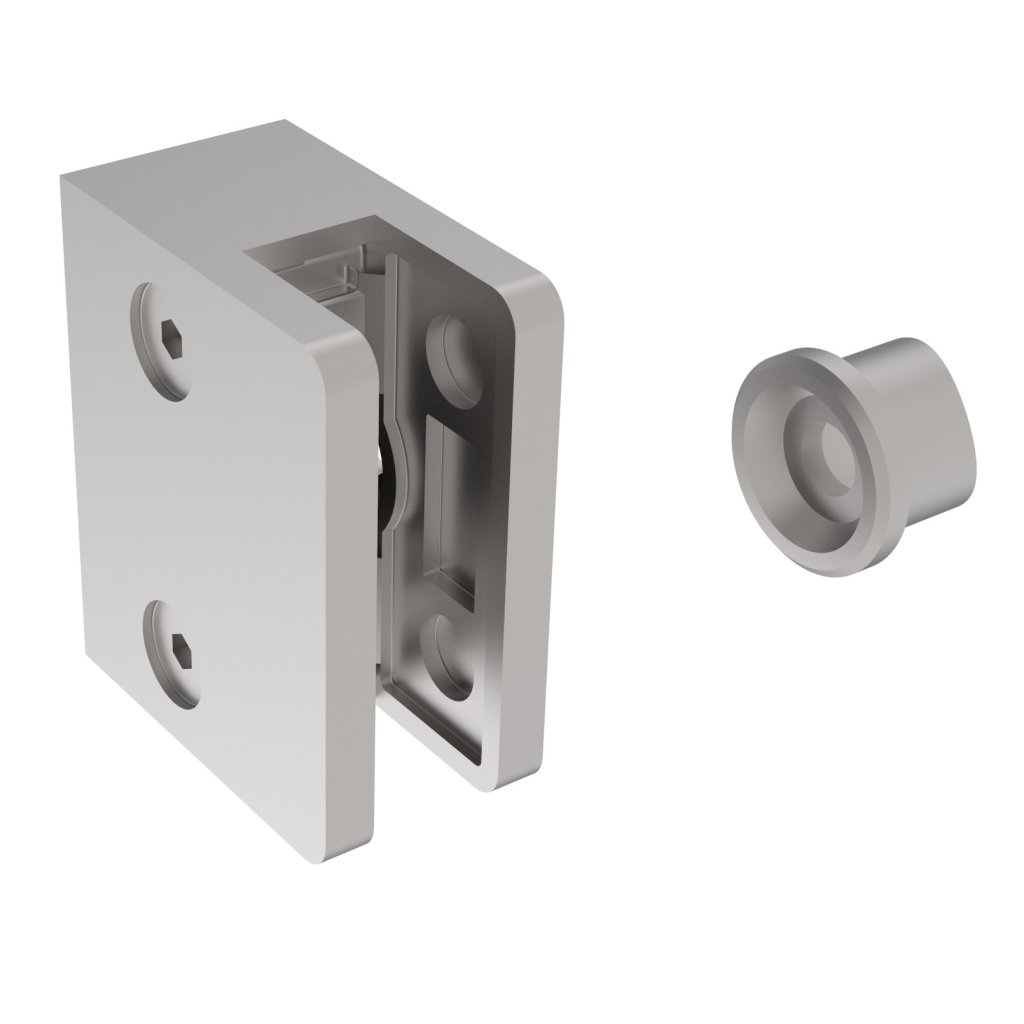 Uhlovo nastaviteľný jednostranny drziak výplne skla (plechu, tabuľovej vyplne). Držanie vyplne (poistenie voči vypadnutiu): zverny spoj (doporucene pouzitie pri vrchnom kotveni). Držiak neobsahuje tesnenie (nutnost dokupit 2ks tesneni podla hrubky skla) a krytky pre skrutky.Dodatočné parametre