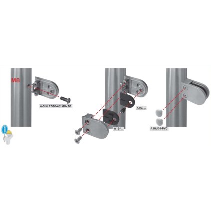 Držiak sklenenej (plechovej, tabuľovej) výplne je konštrukčný prvok používaný na upevnenie a stabilizáciu sklenenej alebo plechovej výplne v rôznych konštrukciách, ako sú zábradlia, balkóny alebo schodiská. Tento držiak zaisťuje pevné a bezpečné prichytenie výplne, čím zvyšuje celkovú stabilitu a bezpečnosť konštrukcie. Sú súčasťou moderných architektonických riešení, ktoré kombinujú funkčnosť, bezpečnosť a estetický vzhľad. Pri výbere držiaka je dôležité zvážiť jeho materiál, dizajn, funkčnosť a kompatibilitu s konkrétnou výplňou a celkovou konštrukciou. Držanie vyplne - poistenie voči vypadnutiu je dosiahnuté pomocou zverného spoja (doporučené použitie pri vrchnom kotveni). Držiak neobsahuje tesnenie (nutnost dokupit 2ks tesneni podla hrubky skla) a krytky pre skrutky.Dodatočné parametre