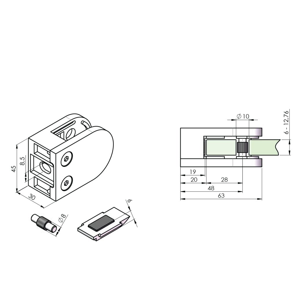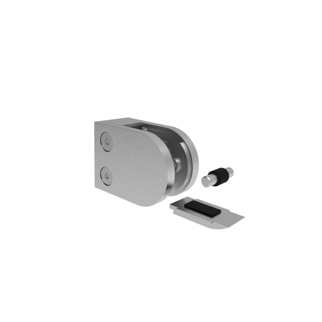 Držiak sklenenej (plechovej, tabuľovej) výplne je konštrukčný prvok používaný na upevnenie a stabilizáciu sklenenej alebo plechovej výplne v rôznych konštrukciách, ako sú zábradlia, balkóny alebo schodiská. Tento držiak zaisťuje pevné a bezpečné prichytenie výplne, čím zvyšuje celkovú stabilitu a bezpečnosť konštrukcie. Sú súčasťou moderných architektonických riešení, ktoré kombinujú funkčnosť, bezpečnosť a estetický vzhľad. Pri výbere držiaka je dôležité zvážiť jeho materiál, dizajn, funkčnosť a kompatibilitu s konkrétnou výplňou a celkovou konštrukciou. Držanie vyplne - poistenie voči vypadnutiu je dosiahnuté pomocou zverného spoja (doporučené použitie pri vrchnom kotveni) alebo zverny spoj + kolik (doporučené použitie pre bočne kotvenie) alebo zverny spoj + bezpečnostná platnicka (doporucene pouzitie pre bocne kotvenie). Držiak neobsahuje tesnenie (nutnost dokupit 2ks tesneni podla hrubky skla) a krytky pre skrutky.Dodatočné parametre