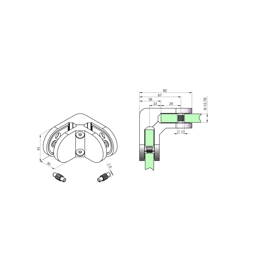 Držiak sklenenej (plechovej, tabuľovej) výplne je konštrukčný prvok používaný na upevnenie a stabilizáciu sklenenej alebo plechovej výplne v rôznych konštrukciách, ako sú zábradlia, balkóny alebo schodiská. Tento držiak zaisťuje pevné a bezpečné prichytenie výplne, čím zvyšuje celkovú stabilitu a bezpečnosť konštrukcie. Sú súčasťou moderných architektonických riešení, ktoré kombinujú funkčnosť, bezpečnosť a estetický vzhľad. Pri výbere držiaka je dôležité zvážiť jeho materiál, dizajn, funkčnosť a kompatibilitu s konkrétnou výplňou a celkovou konštrukciou. Slúži ako rohová spojka na prepojenie výplne, držanie vyplne (poistenie voči vypadnutiu) je dosiahnuté pomocou zverného spoja (doporučené použitie pri vrchnom kotveni) alebo zverny spoj + kolik (doporučené použitie pre bočne kotvenie). Držiak neobsahuje tesnenie (nutnost dokupit 4ks tesneni podla hrubky skla) a krytky pre skrutky.Dodatočné parametre