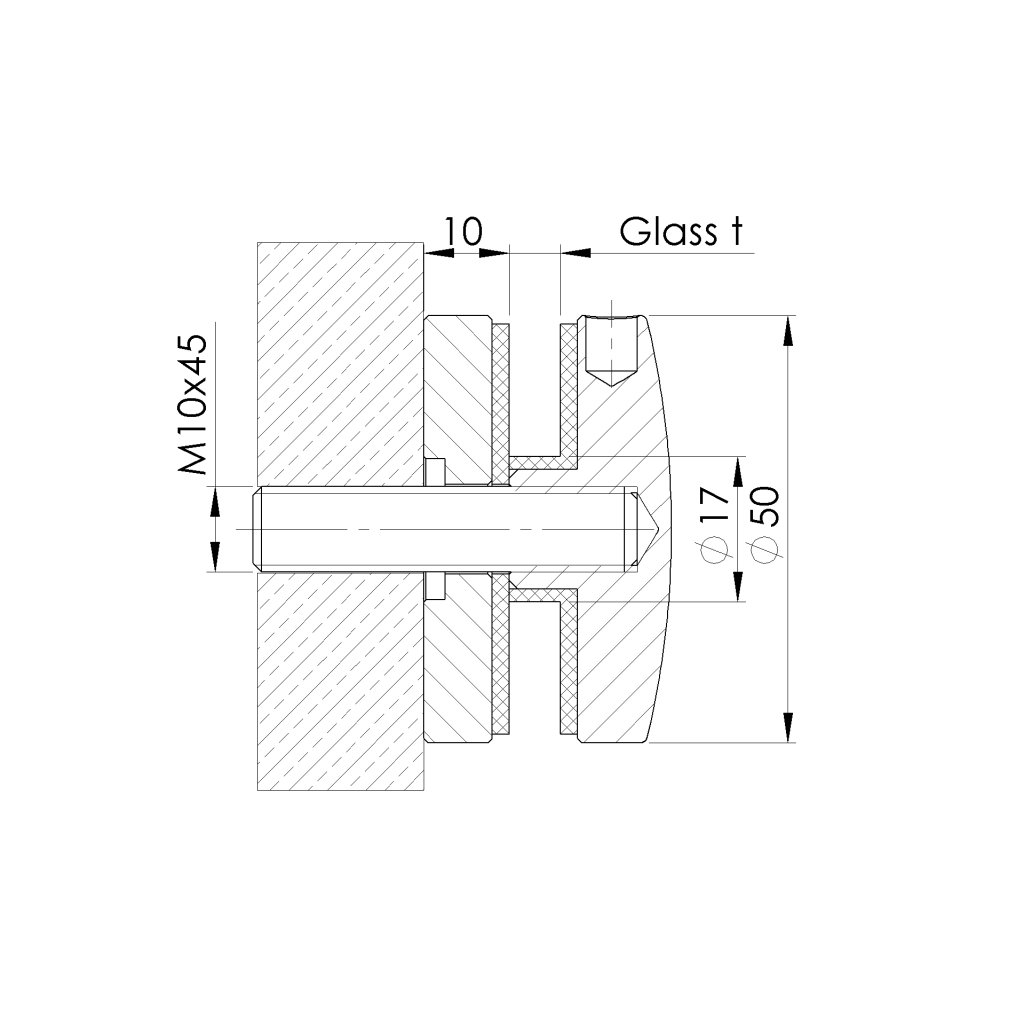 Bodový držiak výplne skla je špeciálny konštrukčný prvok, ktorý slúži na upevnenie sklenenej výplne do rámu alebo konštrukcie bez použitia tradičných lištových držiakov. Tieto držiaky majú zvyčajne tvar kruhového alebo štvorcového hrotu, ktorý je uchytený do podkladu a drží sklo pomocou malého kontaktného bodu. Poskytujú minimalistický vzhľad, pretože nevyžadujú rozsiahle lišty alebo rámy, ktoré by obklopovali sklo. Tento dizajn umožňuje maximálne využitie svetla a otvorenosť priestoru, čo je ideálne pre moderné a minimalistické architektonické aplikácie. Používajú sa najmä v interiérových a exteriérových aplikáciách, ako sú zábradlia, balustrády, dvere, steny a iné konštrukcie, kde je požadovaný moderný a elegantný vzhľad.Dodatočné parametre