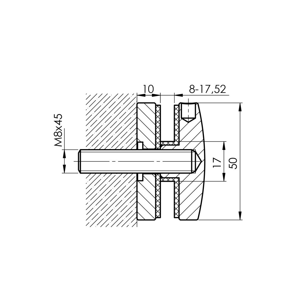 Bodový držiak výplne skla je špeciálny konštrukčný prvok, ktorý slúži na upevnenie sklenenej výplne do rámu alebo konštrukcie bez použitia tradičných lištových držiakov. Tieto držiaky majú zvyčajne tvar kruhového alebo štvorcového hrotu, ktorý je uchytený do podkladu a drží sklo pomocou malého kontaktného bodu. Poskytujú minimalistický vzhľad, pretože nevyžadujú rozsiahle lišty alebo rámy, ktoré by obklopovali sklo. Tento dizajn umožňuje maximálne využitie svetla a otvorenosť priestoru, čo je ideálne pre moderné a minimalistické architektonické aplikácie. Používajú sa najmä v interiérových a exteriérových aplikáciách, ako sú zábradlia, balustrády, dvere, steny a iné konštrukcie, kde je požadovaný moderný a elegantný vzhľad.Dodatočné parametre