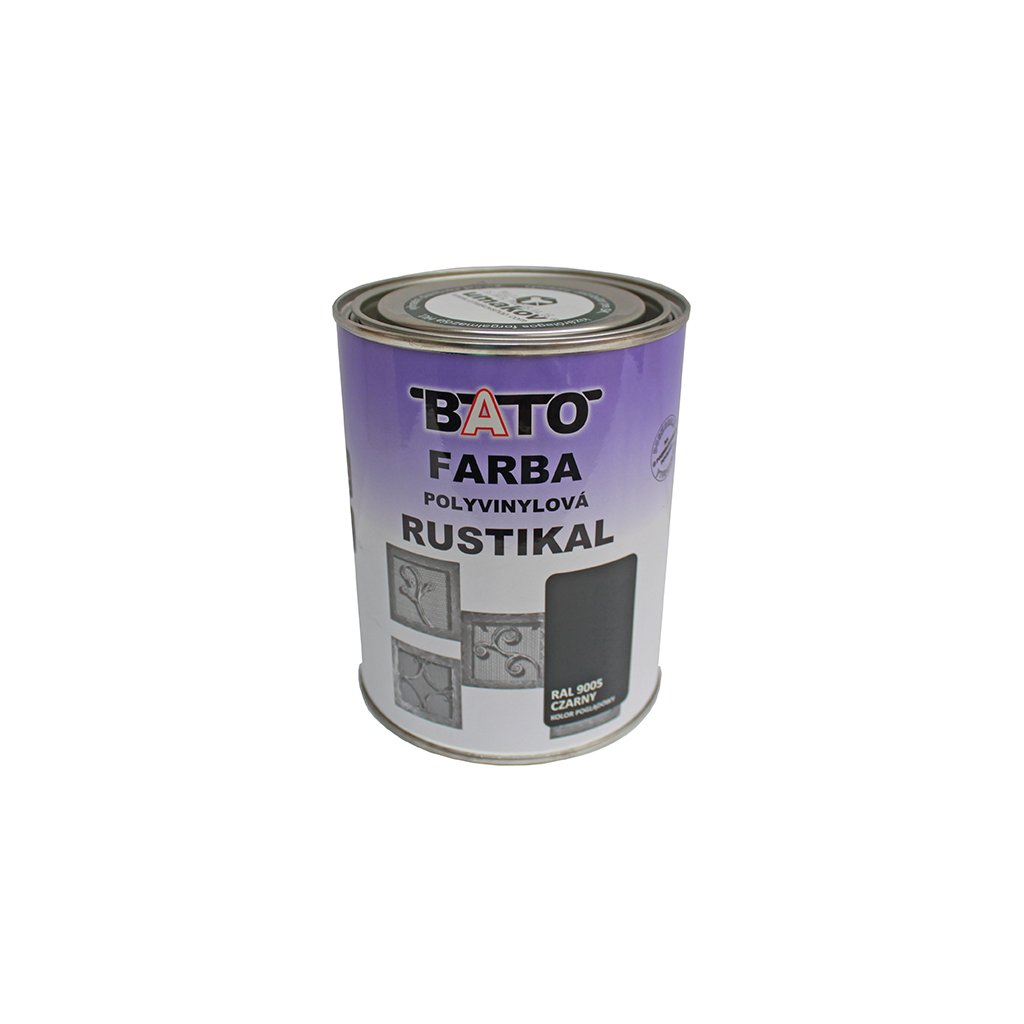 BATO Rustikal - polyvinylová farba je určená na priame lakovanie oceľových, liatinových a pozinkovaných povrchov s cieľom dodať im dekoratívnu textúru kovového lesku pripomínajúceho pieskovanú oceľ. Po naneseni farby na výrobok a uschnutí (cca 24 hod.) je možné prejsť po výrobku suchou drsnou handrou, alebo mosadzným kartáčom, zotrie sa vrchná vrstva , následne bude viditeľná spodná vrstva farby (v nej su veľmi jemné hlinikové častice), na výrobku sa zošuchaním vrchnej vrstvy vytvorí efekt striebornej patiny - tzv. RUSTIKÁL. Tento efekt sa na výrobku prejaví aj pôsobením poveternostných vplyvov, napr. dážď vytvorí RUSTIKÁL-ny efekt na výrobku.Vďaka svojmu mimoriadne dekoratívnemu náteru sa používa na nátery brán a plotov, stĺpov osvetlenia, pamätných tabúľ, ozdobných zábradlí a pod.