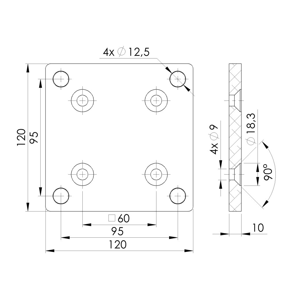 Hliníková kotviaca platňa pre stĺpik 70x70 R7016
