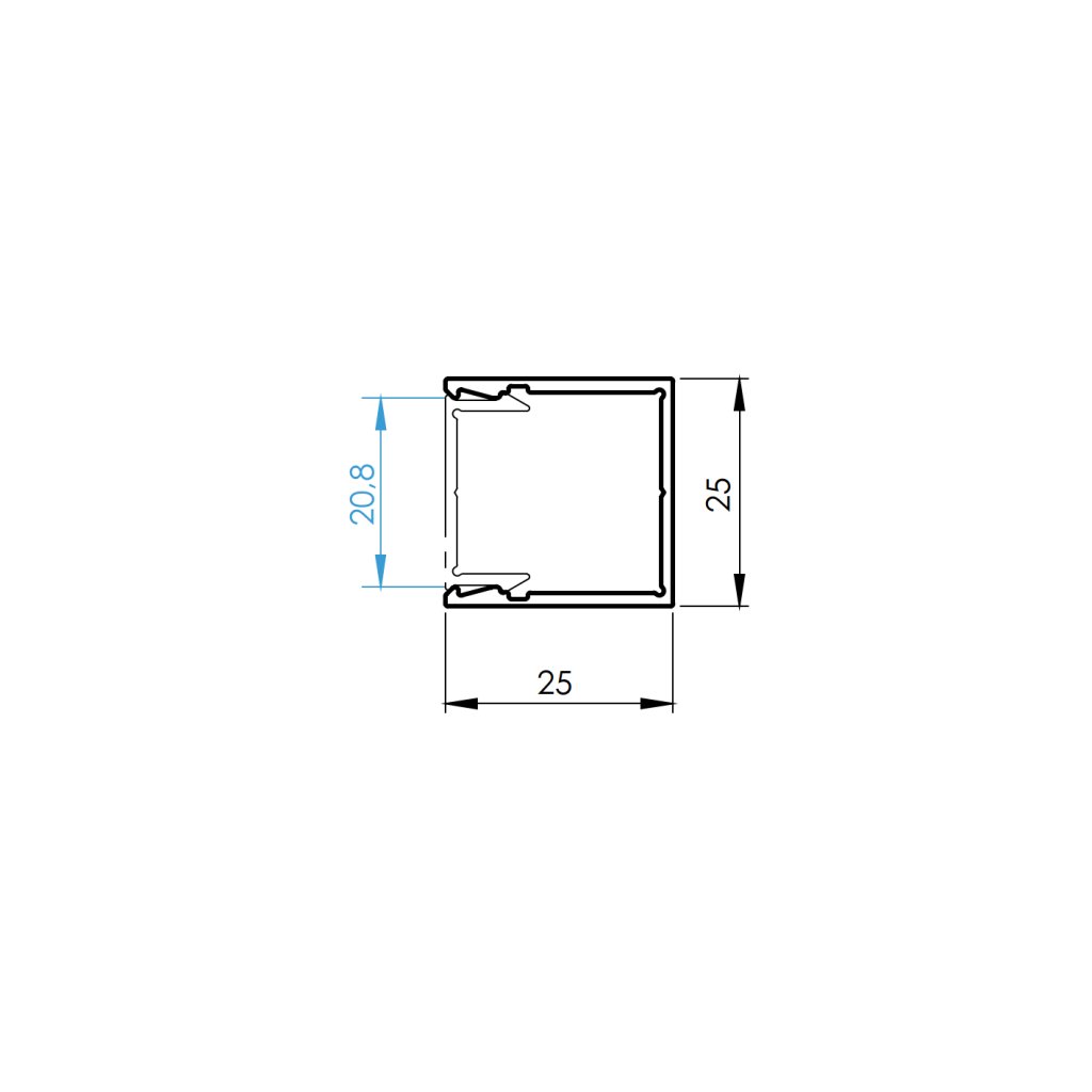 Hliníkový plotový adaptér pre výplne 20 mm a pre fasádny systém, 25 x 25 – 6,0 m – Natural