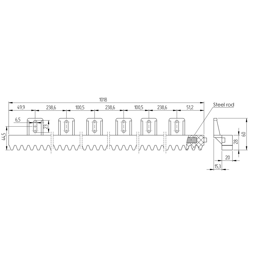 Hrebeň plastový PVC+Fe,27x18mm,L1m,max 700kg