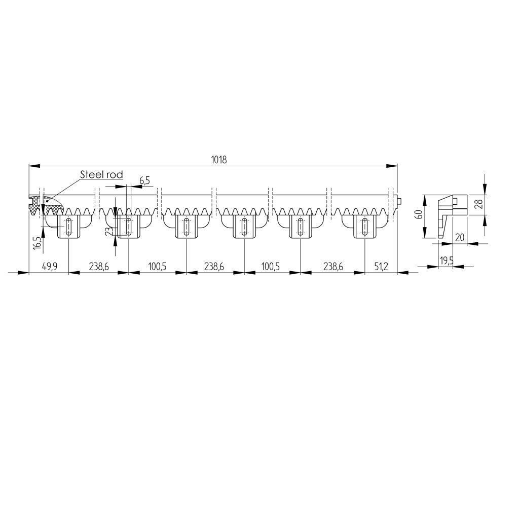Hrebeň plastový PVC+Fe,27x20mm,L1m,max 1200kg