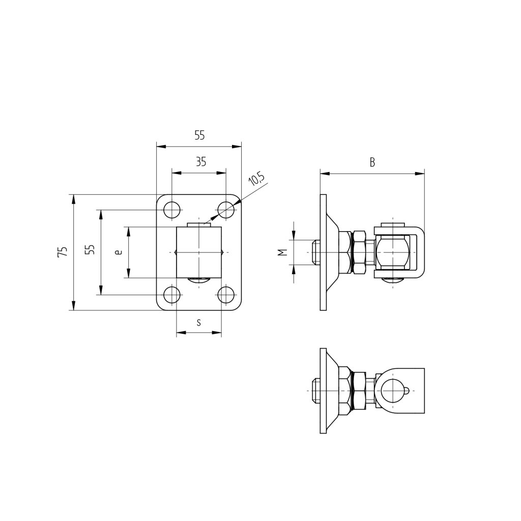 Nerezový nastaviteľný záves s kotviacou prírubou 55x75mm, závit M12. Jednoduchá regulácia závesu pomocou otočnej matice. Záves dodávaný s kontramaticou.Dodatočné parametre