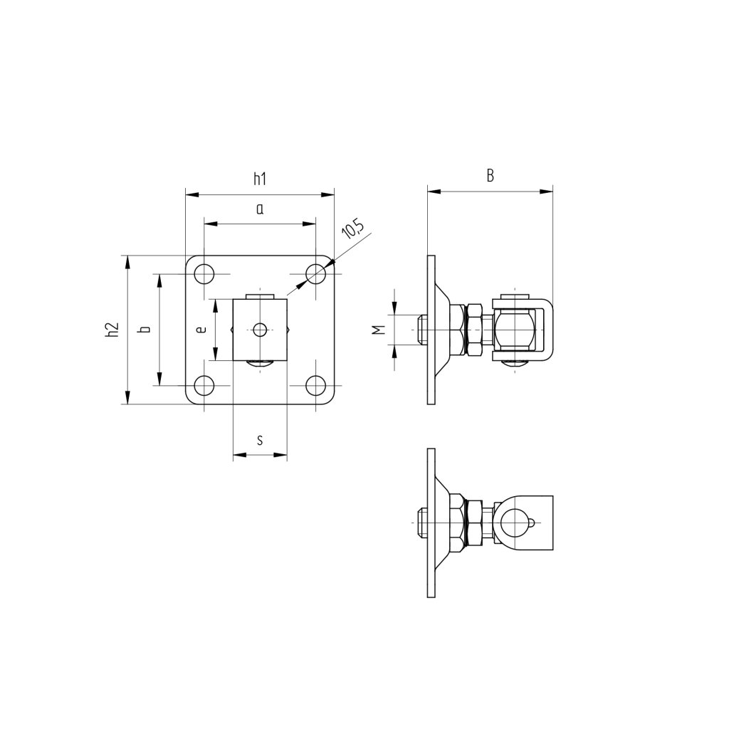 Nerezový nastaviteľný záves s kotviacou prírubou 100x100mm, závit M20. Jednoduchá regulácia závesu pomocou otočnej matice. Záves dodávaný s kontramaticou.Dodatočné parametre