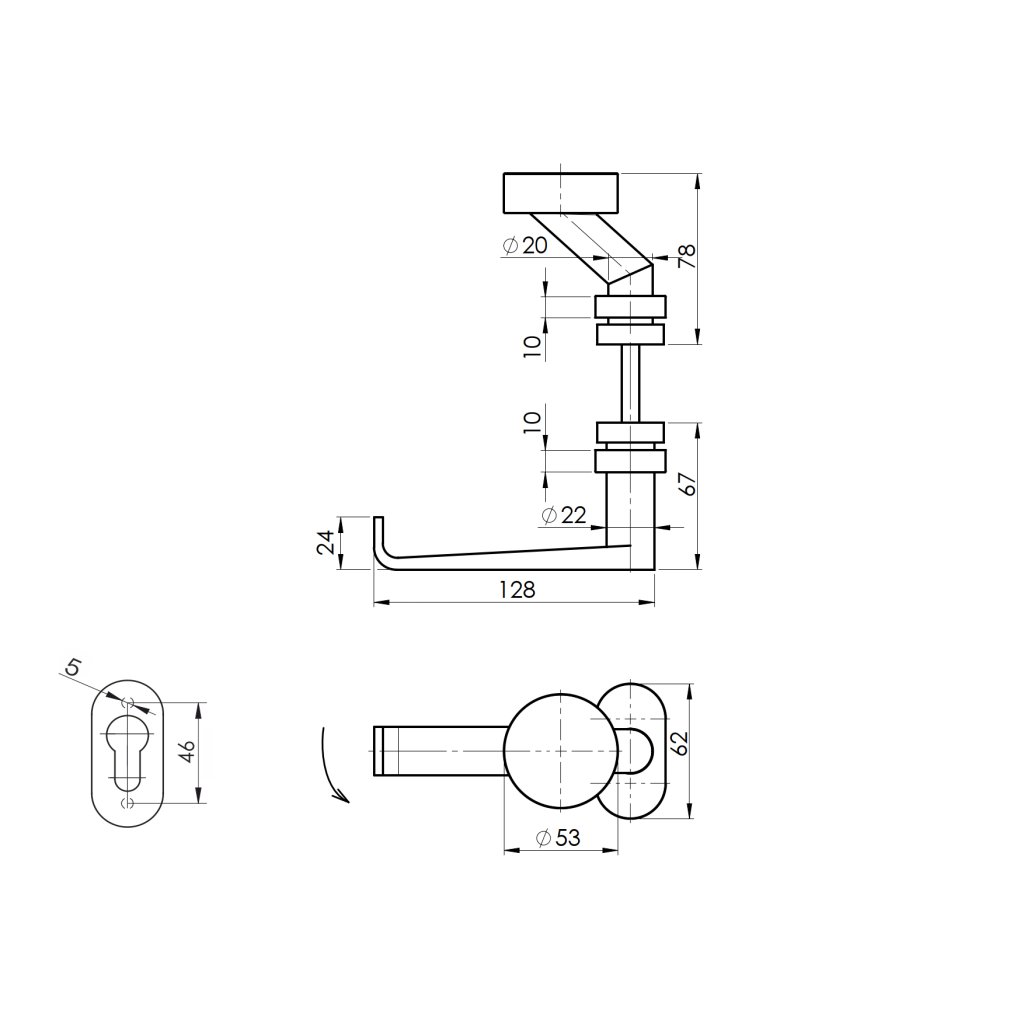 Kľučka/guľa so štítkom na cylindrickú vložku - 1pár - brusený nerez, možnosť otočenia pružinového vratného mechanizmu pre zmenu smeru otváraniaDodatočné parametre