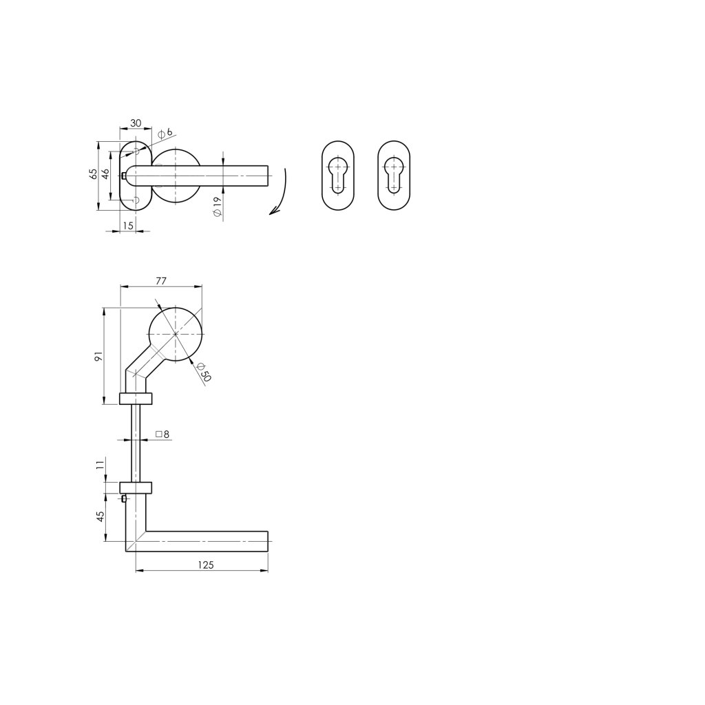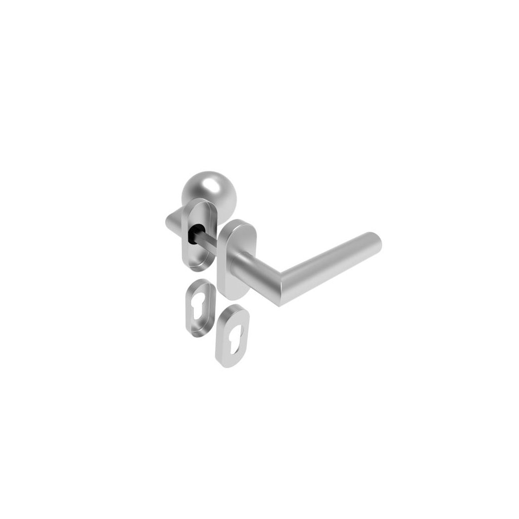 Kľučka/guľa so štítkom na cylindrickú vložku - 1pár - brusený nerez, možnosť otočenia pružinového vratného mechanizmu pre zmenu smeru otváraniaDodatočné parametre