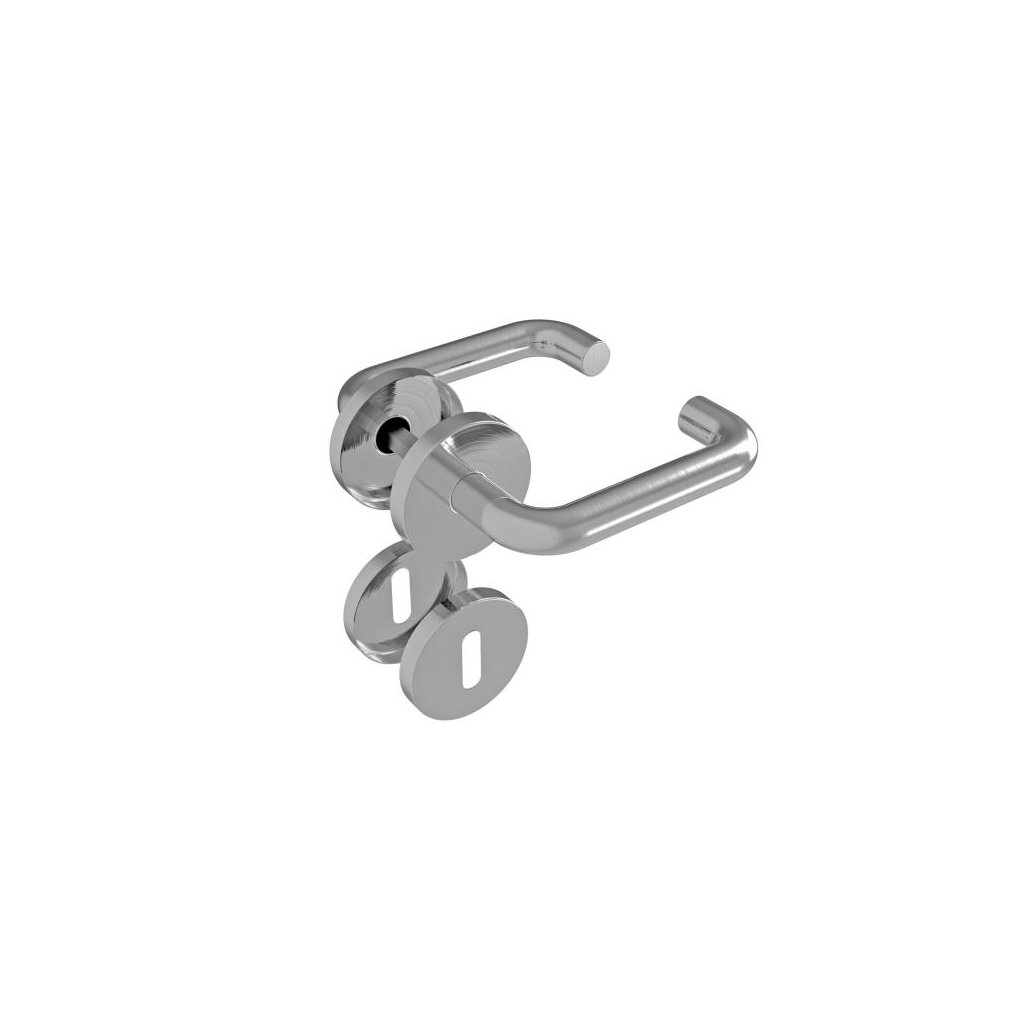Kľučka so štítkom na cylindrickú vložku - 1pár - brusený nerez, možnosť otočenia pružinového vratného mechanizmu pre zmenu smeru otváraniaDodatočné parametre