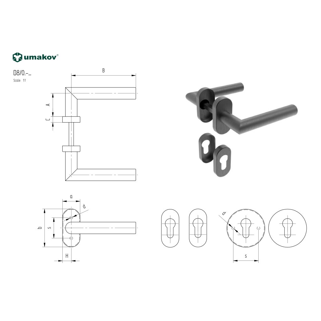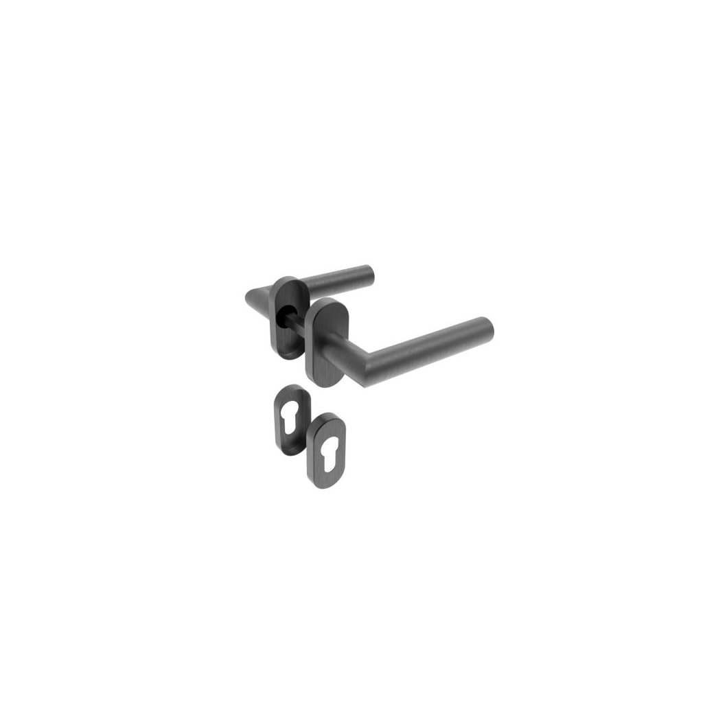 Kľučka so štítkom na cylindrickú vložku - 1pár - brusený nerez, možnosť otočenia pružinového vratného mechanizmu pre zmenu smeru otváraniaDodatočné parametre