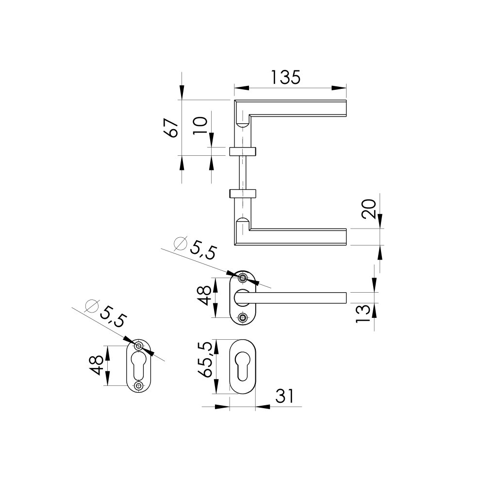 Kľučka so štítkom - pár, AISI 304, K320