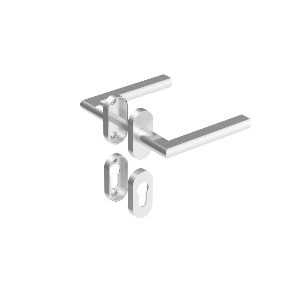 Kľučka so štítkom na cylindrickú vložku - 1pár - brusený nerez, možnosť otočenia pružinového vratného mechanizmu pre zmenu smeru otváraniaDodatočné parametre