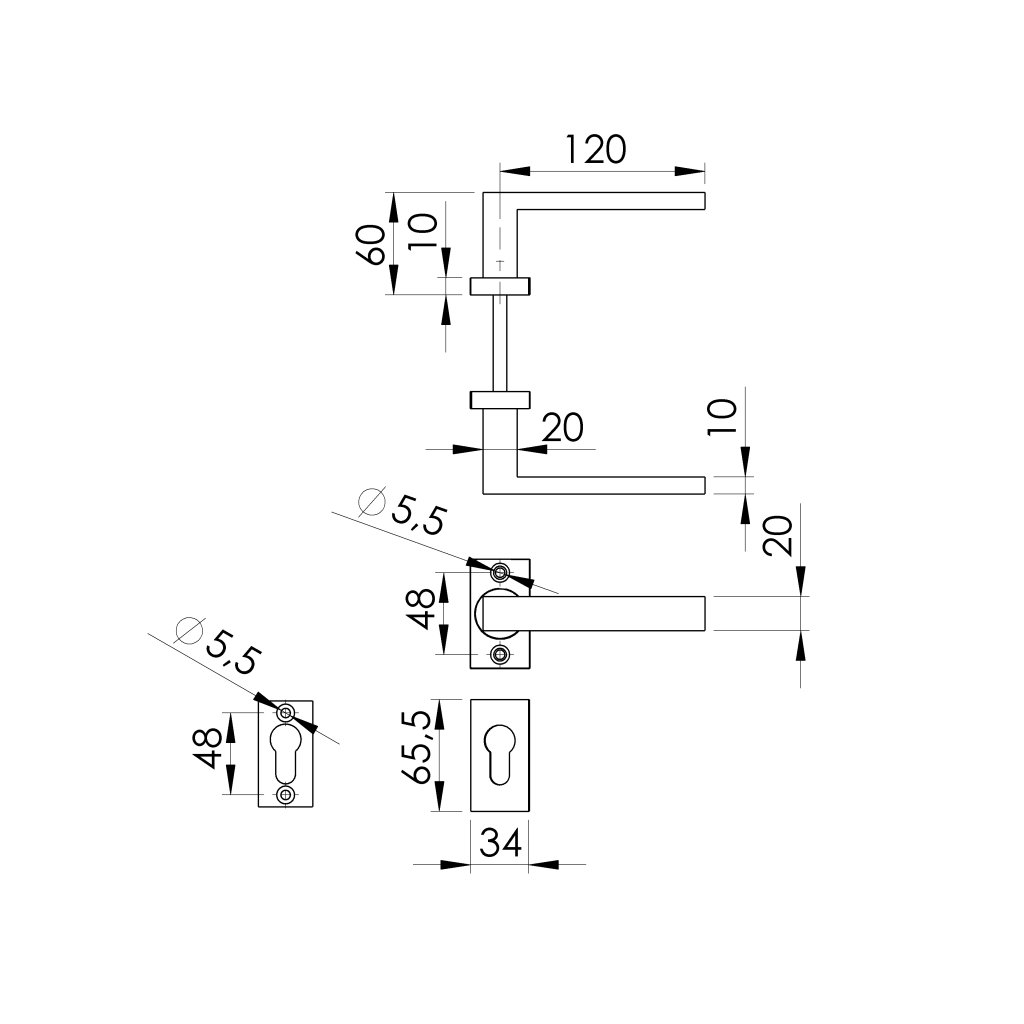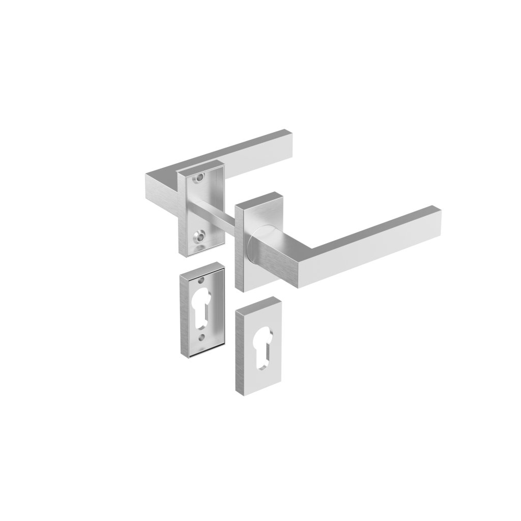 Kľučka so štítkom na cylindrickú vložku - 1pár - brusený nerez, možnosť otočenia pružinového vratného mechanizmu pre zmenu smeru otváraniaDodatočné parametre