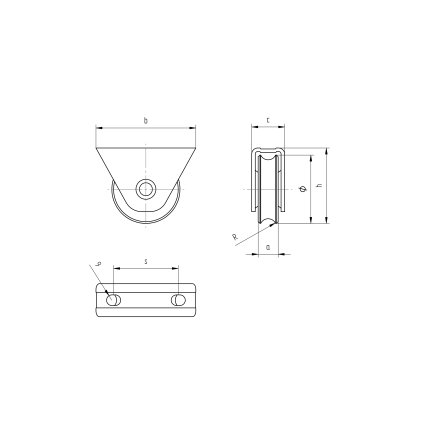 Materiál: Oceľ, Povrchová úprava: Zinok, Značka: Umakov, Hmotnosť brány Gmax/Goptimal (kg): 200, c: 28, H: 75, h: 64, Phi: 58, a: 17, b: 85, R: 8, s: 55