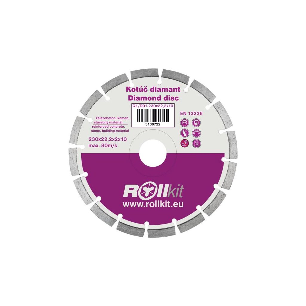 Diamantový kotúč vhodný na rezanie železobetónu, kameňa, betónu, stavebného materiálu.Dodatočné parametre