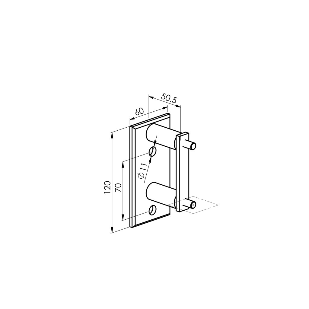 Bočné obdĺžníkové kotvenie stĺpika je konštrukčný prvok používaný na pevné prichytenie stĺpika. Tento typ kotvenia sa často využíva v architektonických a stavebných projektoch na zaistenie stability a bezpečnosti zábradlia. Využíva sa v rôznych aplikáciách, ako sú zábradlia na schodiskách, balkónoch, terasách alebo iných súkromných priestoroch. Kotvenie je navrhnuté tak, aby bolo nenápadné a estetické, čím prispieva k celkovému vzhľadu konštrukcie. Obsahuje 2 otvory, ktoré slúžia na ukotvenie.Dodatočné parametre
