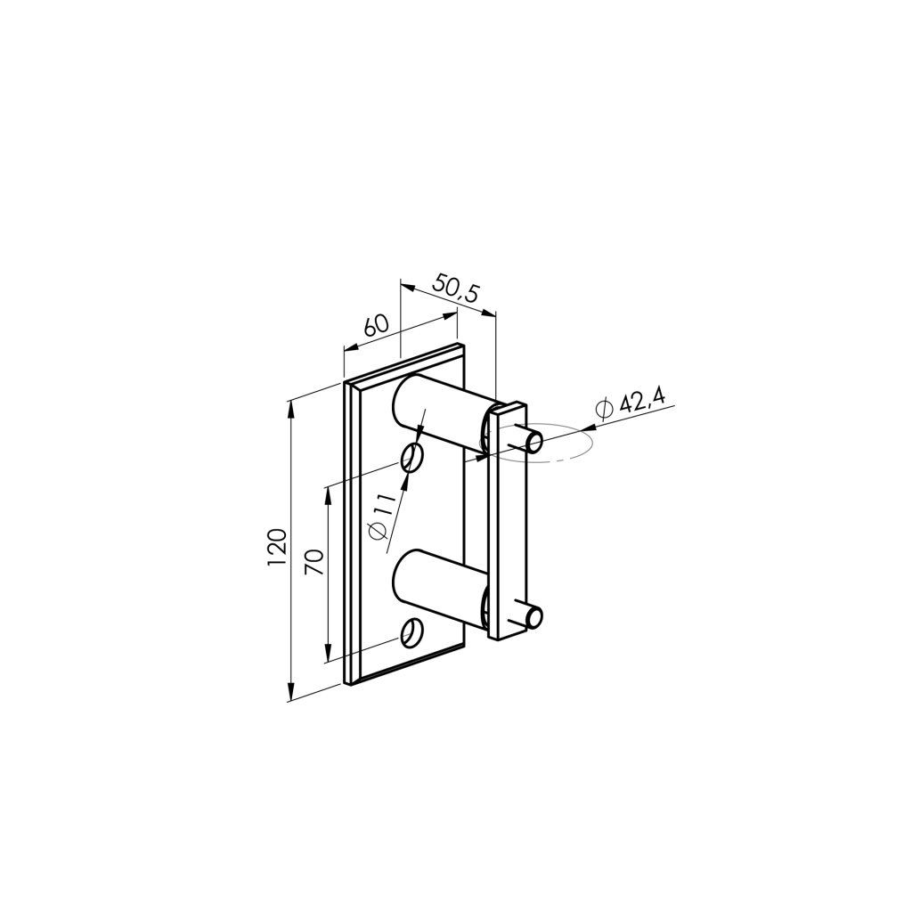 Bočné obdĺžníkové kotvenie stĺpika je konštrukčný prvok používaný na pevné prichytenie stĺpika. Tento typ kotvenia sa často využíva v architektonických a stavebných projektoch na zaistenie stability a bezpečnosti zábradlia. Využíva sa v rôznych aplikáciách, ako sú zábradlia na schodiskách, balkónoch, terasách alebo iných súkromných priestoroch. Kotvenie je navrhnuté tak, aby bolo nenápadné a estetické, čím prispieva k celkovému vzhľadu konštrukcie. Obsahuje 2 otvory, ktoré slúžia na ukotvenie.Dodatočné parametre