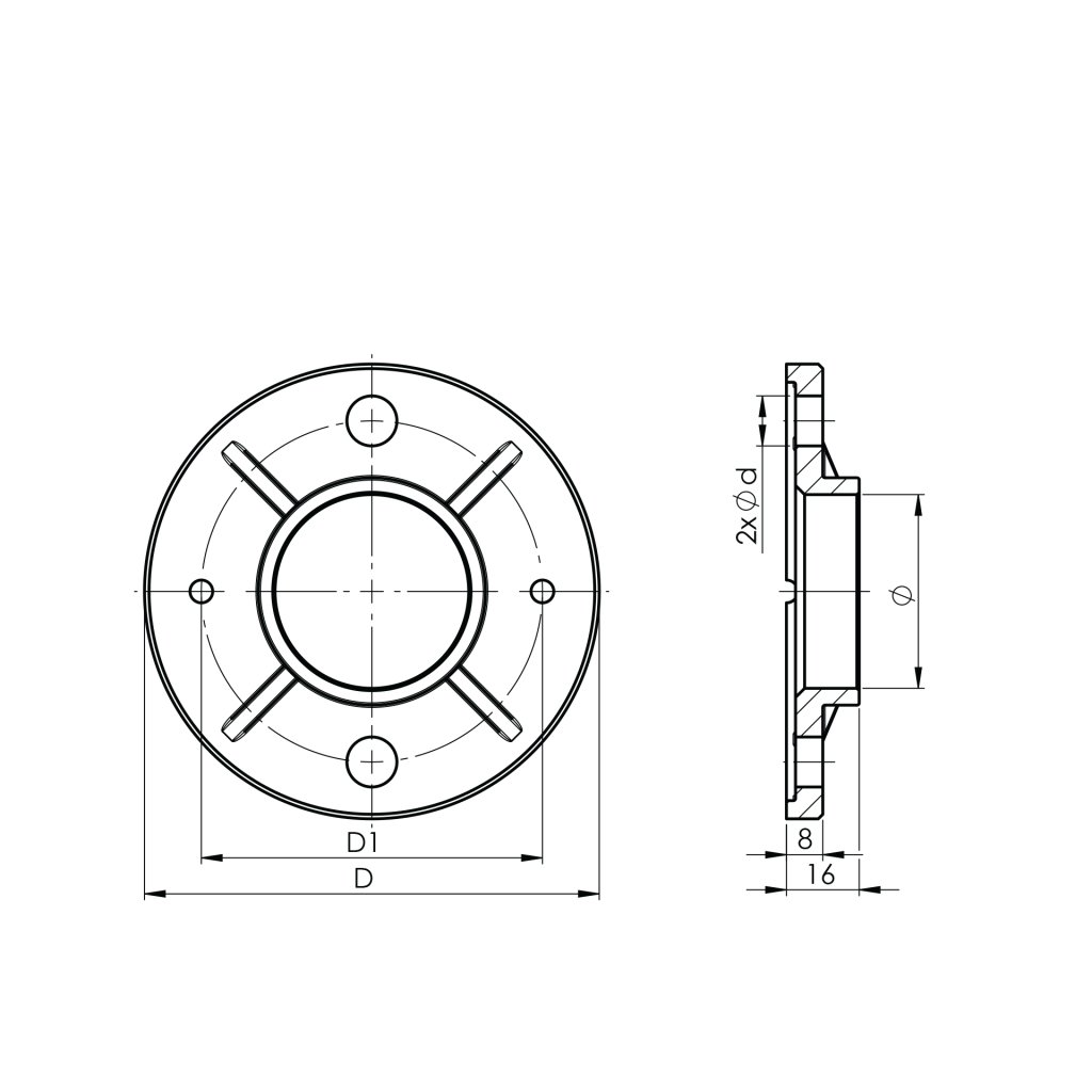 Príruba pre vrchné kotvenie stĺpikov zábradlia poskytuje pevnú podporu a stabilizáciu stĺpika a zabezpečuje jeho bezpečné uchytenie na mieste. Pre ukotvenie sa na prírube nachádzajú otvory, ktoré spolu s kotviacím materiálom zabezpečujú prichytenie k povrchu. Po prepojení s rúrou vytvárajú stlpik, ktorý je základom každého zábradlia. Pre lepší dizajn je možné obohatiť túto prírubu o kryciu rozetu, ktorá spolu so stlpíkom vytvorí dokonalý a jednotný vzhľad.Dodatočné parametre