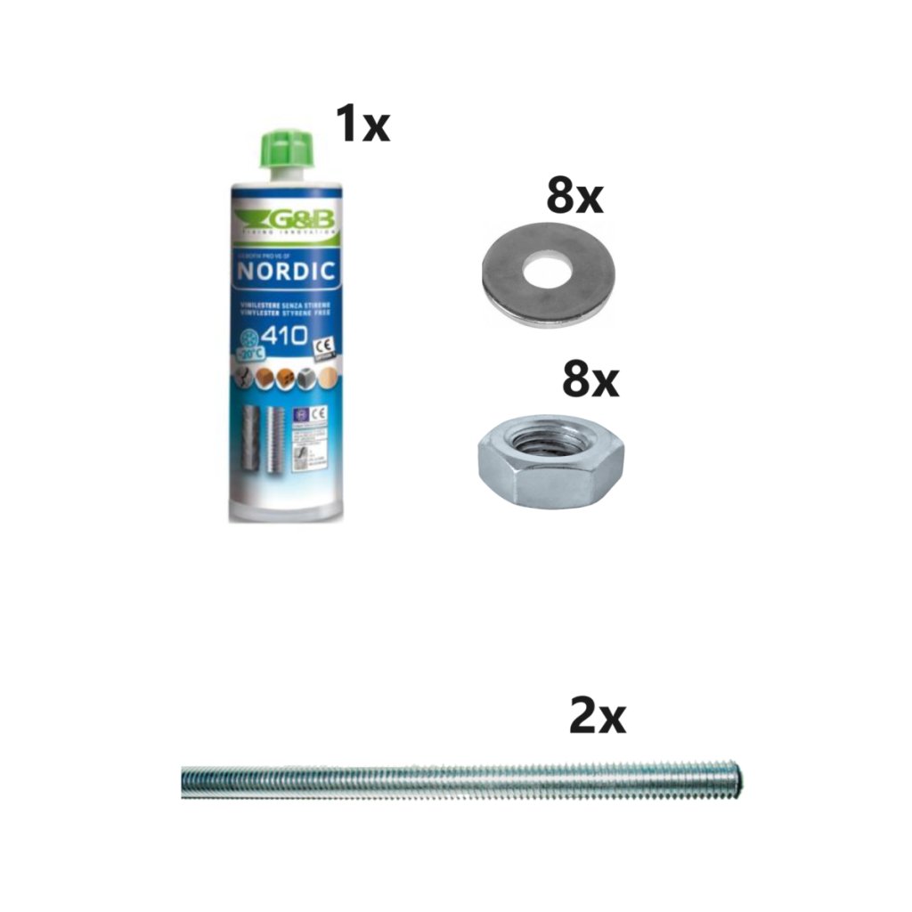 Montážna sada - na zimu pre CARPORT obsahuje:-Závitová tyč - nerez AISI304, M16/L1000mm 2x