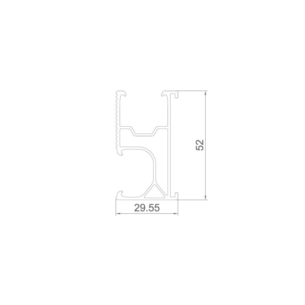 Hliníkový nosný profil 30 x 52 mm o dĺžke 5000 mm na uchytenie fotovoltických panelov. Horná drážka slúži na uchytenie panelov svorkami EIC/FEC/AEC s M8 skrutkami. Bočná drážka je vhodná na uchytenie montážnych komponentov prizmou a M8 skrutkou prípadne kladivkovou T skrutkou. Hmotnosť 1m čierneho eloxovaného profilu je 0,7kg.Dodatočné parametre