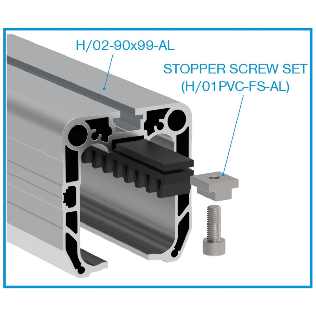 Koncový doraz pre montáž ozubených nylonových hrebeňov H/01PVC-AL do konzoly H/01PVC-AL-K.Dodatočné parametre