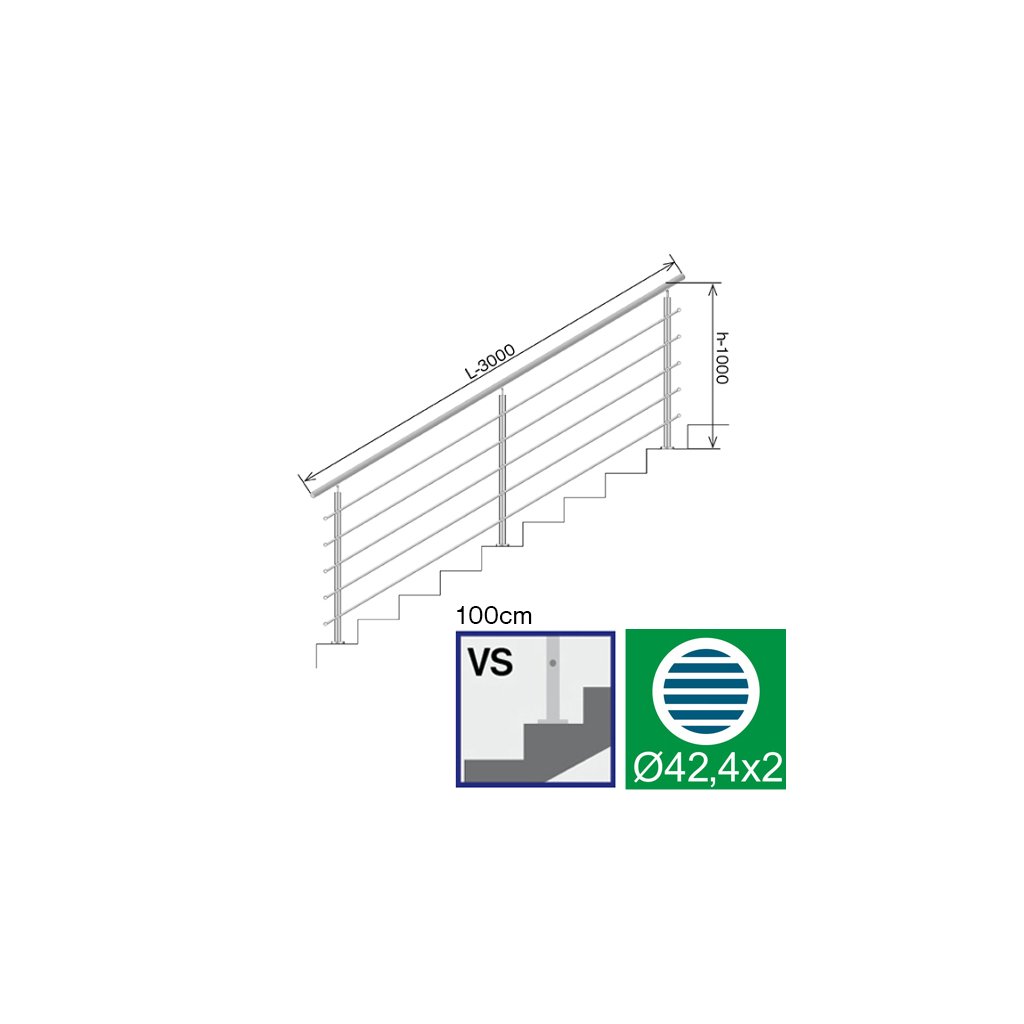 Nerezové zábradlie na schody, 3000x1000mm, VS