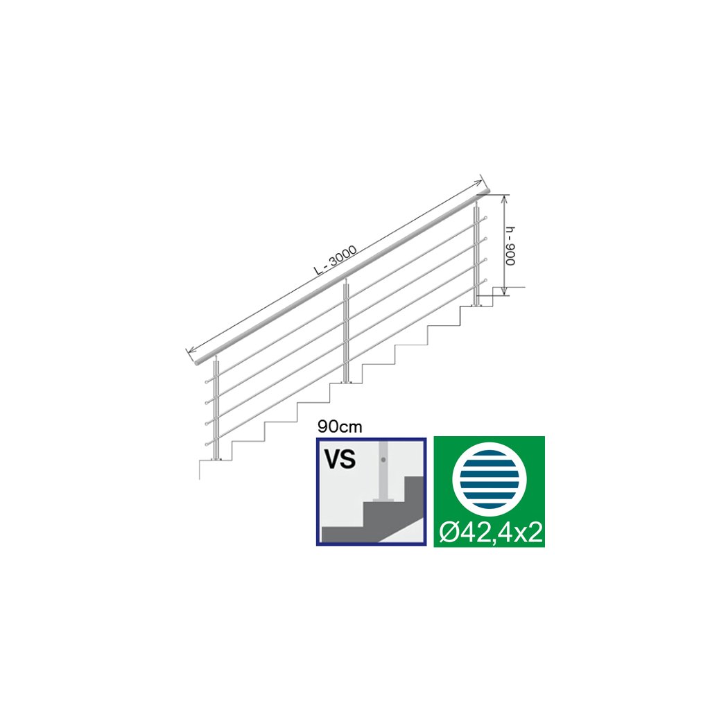 Nerezové zábradlie na schody, 3000x900mm, VS