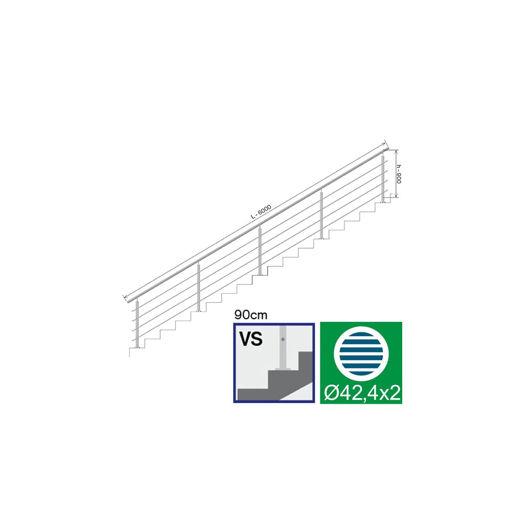 Nerezové zábradlie na schody, 6000x900mm, VS