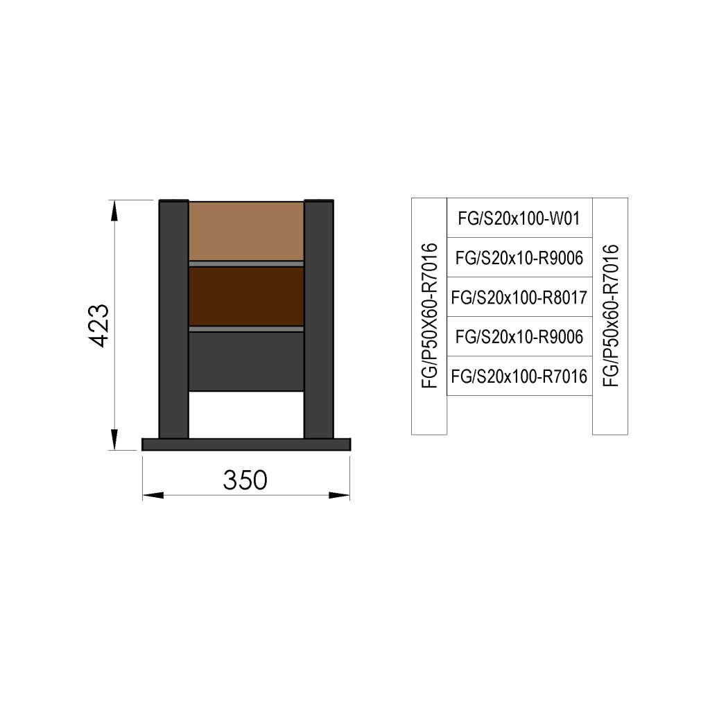 Táto vzorka plotu je vyrobená z rôznych druhov hliníkových lamiel, čo zabezpečuje ich ľahkosť, odolnosť voči poveternostným vplyvom a dlhú životnosť. Rozmery vzorky sú 0,3 m × 0,4 m, čo umožňuje jednoduchú manipuláciu a prehľadnú prezentáciu výrobkov. Vzorka obsahuje stĺpiky FG/P50×60. Lamely sú rovnomerne rozmiestnené a môžu byť dostupné v rôznych prevedeniach, farbách a povrchových úpravách.Vzorka slúži na ukážku kvality a dizajnu plotových panelov, pričom je vhodná na výstavné účely, porovnanie farieb alebo ako vzorový prvok pre zákazníkov pri výbere ideálneho plotového riešenia.