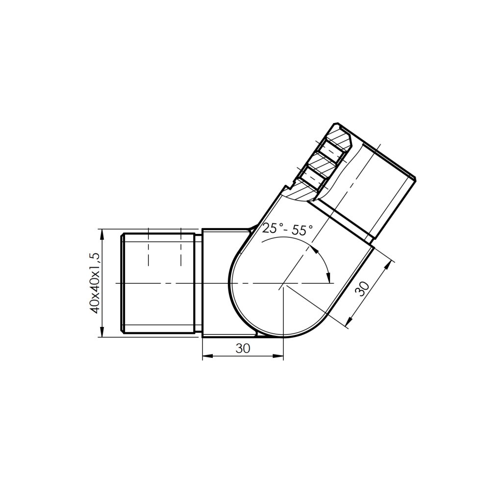 Nerezový prechod madla sklo - koleno nahor 25°-55°. Lepené spoje.Dodatočné parametre