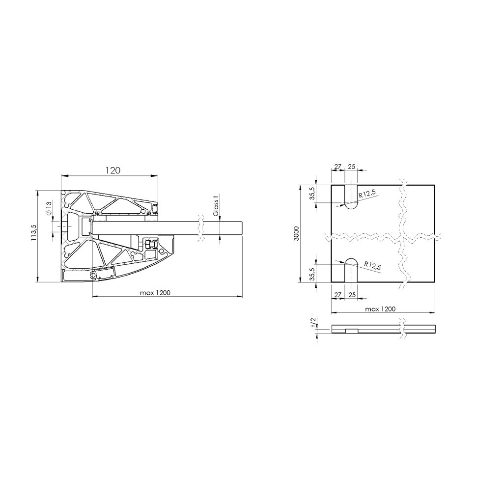 Presklená strieška hliník pre bezpečnostné sklo lepené 12,76-13,52 / 16,76-17,52 / 20,76-21,52 . Sada obsahuje hliníkový profil, záslepky, kryt, tesnenie a potrebné diely pre konečnú montáž skla. Hliníková lišta pre sklenený prístrešok dodávaná bez skla a kotviaceho materiálu.Dodatočné parametre